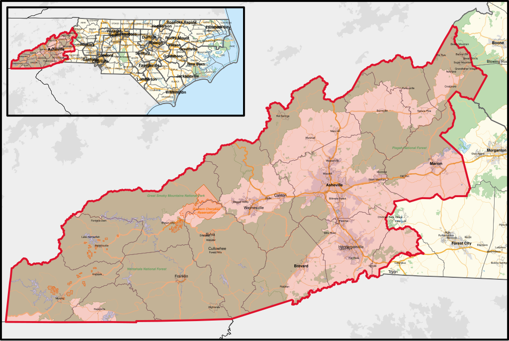 The 11th Congressional District includes all or parts of Avery, Buncombe, Cherokee, Clay, Graham, Haywood, Henderson, Jackson, Macon, Madison, McDowell, Mitchell, Polk, Swain, Transylvania, and Yancey county.